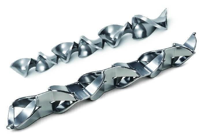 ヘリカル型は、滑らかな曲面ゆえ圧力損失が低く、ΔP最小条件下で混合度を優先する用途ではメリットがありますので、条件詳細をご提示いただけましたら最適解で製作提案いたします。